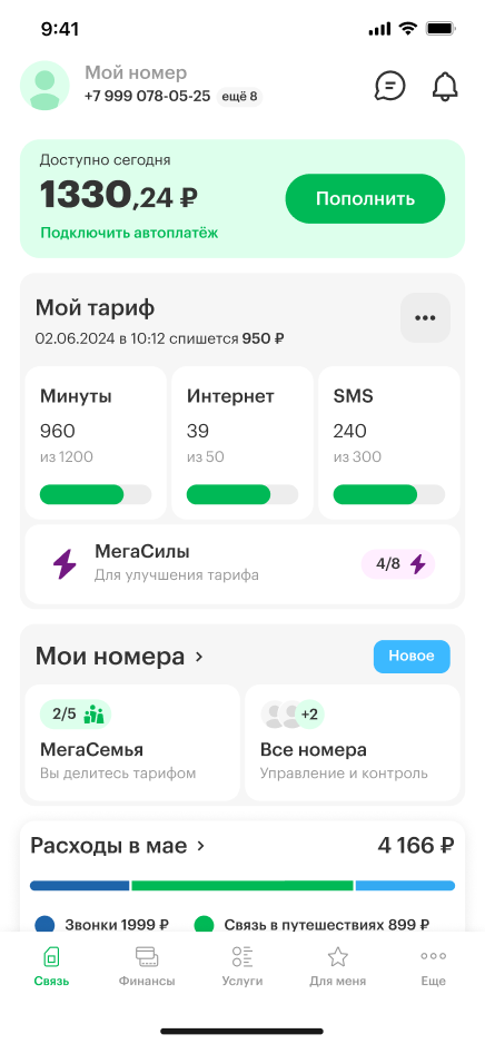 Войдите в Личный кабинет или приложение «МегаФон».