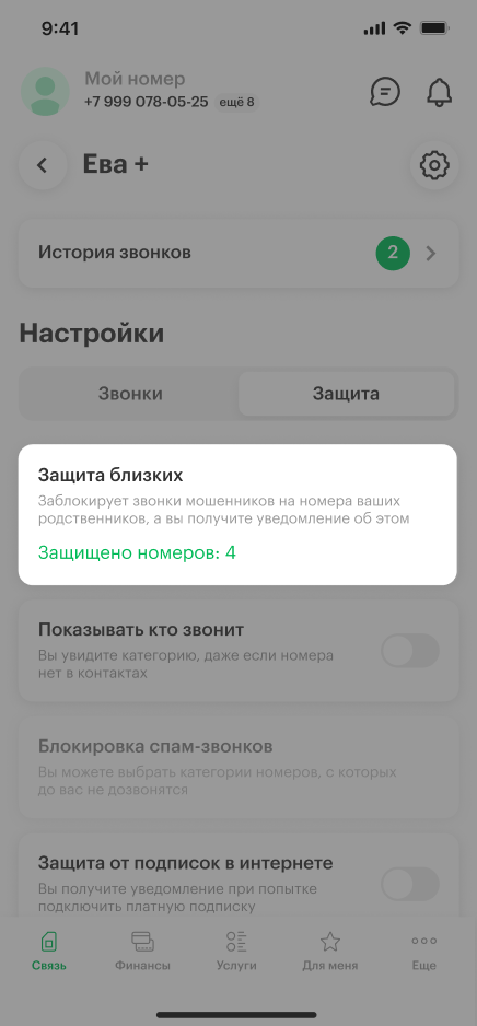 Защиту можно включить, если у ваших близких номер МегаФона